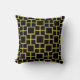 Modern Square Pattern Gold on Black Throw Pillow