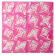 Mid-Century Modern abstract tile of squared spirals in deep coral pink, cream, coral orange, and magenta