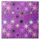 Ceramic tile in a mid-century modern pattern of seven-point, outlined stars, in shades of lavender, plum, orchid, black and white, on a soft violet purple background