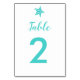 Modern Starfish Wedding Table Number Card, Aqua