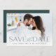 Announce your wedding date in unforgettable style with these elegant and modern photo save the date cards, featuring a full bleed horizontal or landscape oriented photo with "save the date" overlaid in rich forest green lettering along the bottom. Your names, wedding date, and wedding location appear beneath in modern lettering. Personalize the back with additional details, such as your wedding website.