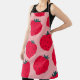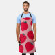 Great color and even though I ordered the kid size, it covers well enough to use during the holidays. I am not a big woman and prefer a shorter apron. I stand 5"6" and the length of the garment goes to mid-thigh. The tie straps fit well at my waist and even though there is no neck strap adjustment, the opening is plenty big enough. I am happy with the size and fit. I am sharing my apron with my 10 year old grandson, too! The color is vibrant and looks good, as shown on the website. The stitching looks strong and reinforced. Photographed is front side and back side of the apron, reinforced straps and coloring. My phone camera may not be the best at showing the details.