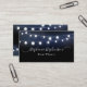 Elegant and classy dark black background with romantic string of lights across the front and back of this modern trendy business card. Perfect for a wedding or event planner, consultant, dj, restaurant, night club or evening themed business.