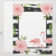 Cute little print with messy black and white stripes and pink flamingos and flowers.