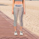 Capri Leggings in beige and blue. Custom quote art hashtag design "#momlife" in beach colors. For busy moms who love their workout.