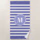 Pretty and trendy cabana stripe beach towel in blue violet shade) and white striped pattern with your monogram inside an abstract periwinkle circle.