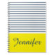 Modern white, blue and yellow striped pattern with custom name