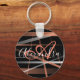 Modern Stripes Abstract Pattern Coral Monogram Keychain