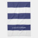 Modern stripes navy blue and white pattern custom name monogram kitchen towel