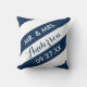 Modern Stripes Personalized Throw Pillow / Navy Blue. Customize this modern decorative pillow with your name and wedding date!