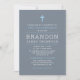Modern Stripes Slate Blue First Communion Boy Invitation