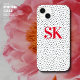 Polka dots of any size never go out of style. This case features a tiny confetti style polka dot in stylish black and white. It features large initials that you can fully customise.