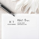 This design features a minimalist, professional business address label with a white background and modern, stylish black colored text. It includes a customizable option to add your initials and profession or job title on the left side paired with your full name in a script font and a mailing address on the right side.