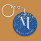 This simple yet stylish keychain features a deep blue background with glamorous faux gold glitter, resembling a starry night. The keychain is highlighted by a chic white monogram with a customizable name initial in elegant typography. It's the perfect thoughtful gift for special occasions like Secret Santa, Christmas, New Year, anniversaries, or birthdays. Available in various color options, this personalized accessory adds a unique and memorable touch to any celebration. Practical and fashionable, it makes a great keepsake for loved ones, offering both style and sentiment in one beautiful package.
