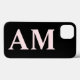 Modern Stylish Blush Pink Black Monogram Initials Case-Mate iPhone Case