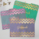 Modern personalized file folder design featuring gold/pink chevron pattern on a green/gray/purple background with your custom text in the middle. The text is fully customizable. To change it use the Personalize option. For more changes, such as changes to the font, font color or text layout, use the Edit design tool option.