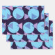 Three sheets of wrapping paper in an aesthetic purple and blue with an abstract geometric shapes pattern.