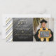 The back of the card features 2 snapshot photo collage of the graduate with an inspirational quote. The background can be changed to any color of your choice.