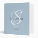 Save your best recipes in this custom diy modern monogram 3-ring binder. The trendy, stylish design features your initial in a gorgeous calligraphy script with flourishes that wrap around your name. This design is in the dusty blush blue and black/white combination. Also makes a great gift for any baker, cook, or home chef!