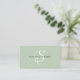 The trendy, stylish monogram business card design features your initial in a gorgeous calligraphy script with flourishes that wrap around your name. On the back is space for your professional title, contact info, social media, and your website address. This version is in the dusty sage and black/white combination.