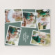 Modern stylish multi photo family home sage green jigsaw puzzle