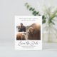Budget Save the Date template with 3 photos. Modern smooth pen handwritten script text. Completely versatile do-it-yourself style layout. The script text is flat image that cannot be edited, but it can be moved, resized, or rotated to align perfectly with your photos in advanced Customize mode. All other text elements can be fully edited. Other styles and sizes available in store.