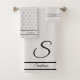 Modern Stylish Silver Light Gray and Black Monogram initial and name Bathroom towel set, designed by Sandy Closs