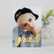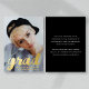 Modern Stylish Photo Graduation Black Gold Foil Invitation Card. Personalize it with your photo, the grad's name, school name and graduation year. Replace the grad's info text on the back with your details or type your own personalized text. A modern and elegant graduation photo announcement card with real gold foil text and personalized text on a black backside. A lovely way to share your high school or college achievements with your family and friends.