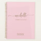 Stylish Modern Feminine Blush Pink Glam Gold Monogram Name Script Signature Custom Personalized 2023 or any year Planner. This minimalist delicate plain color design featuring your first name in a pretty hand lettered style swash tail font calligraphy (or typography), full name (or family name) and year in gold color on baby pink or light blush pink color background. Easy to customize it. Great feminine gift for birthday, bridal shower, mother’s day, wedding, business, sweet 16 birthday, back to school, graduation, professional work and for anyone who loves clean minimalist things.