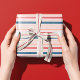 Modern watercolor stripe pattern wrapping paper. Design features our multicoloured blush pink, red, blue and faux gold watercolor stripe design on a light pink background.