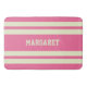 Modern stylish pink white monogram name bath mat