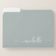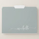 Stylish Modern Sage Green Feminine Monogram Name Signature Script Custom Personalized Office Business Professional File Folder. This minimalist design featuring your first name in a pretty hand lettered style swash tail font signature typography (or calligraphy) in white color on sage green or dusty green color background. These are easy to customize it. Great stylish feminine housewarming gift, also for birthday, wedding, baby shower, bridal shower, sweet 16 birthday party, for graduation party and It’s for the girl who loves unique delicate things.