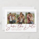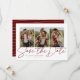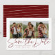 With three vertical photos and a modern script written "save the date," this card is the perfect way to announce your engagement and upcoming wedding to friends and family. The chic maroon red text is bold and modern but still sophisticated. The customizable text on the front has room for names, date, location and other information like a wedding website. The back is a matching maroon and white striped pattern. The color is editable by clicking "Customize."