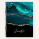 Modern Stylish Teal Agate & Gold Ribbon on Black Notebook
