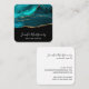 Modern Stylish Teal Agate & Gold Ribbon on Black Square Business Card