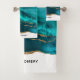 Modern Stylish Teal Agate & Gold Ribbon on White Bath Towel Set