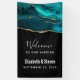 A welcome to our wedding banner with an abstract style. Illustration of teal agate stone with layers of varying shades.
