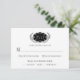Modern wedding RSVP with stylistic vines, ornate swirls frame, and using a mix of ornate calligraphy script and modern font in black and white. The template is easy to personalize with your own information. If you would like this design on a matching product, please contact me through my store. I welcome custom orders and will answer your requests within 24 hours.