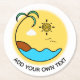 Modern Summer Beach Emblem Art Custom Text Round Paper Coaster