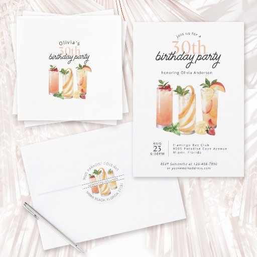 Modern Summer Cocktails 30th Birthday Party Invitation