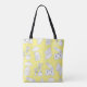 Modern Summer Line Drawings on Yellow Monogram Tote Bag