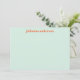 Modern Summer Mint and Orange Striped Personalized Stationery Note Card