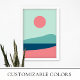 This modern sun and sea landscape print is minimalist, stylish and cute. The turquoise, blue and pink colors can be customized to suit your interior decor.