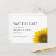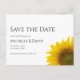 Modern floral Save the Date announcement card, with a yellow sunflower design and simple typography. With customizable black lettering, you can add your own information. This minimal design makes a great addition to your wedding planning activities.