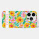 Customize this gorgeous modern sunflowers with pink zinnias painting iPhone 15 pro case with your your name in a trendy modern CAP font in pink on white. It's so beautiful and happy!