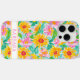 Customize this gorgeous modern sunflowers with pink zinnias painting iPhone 15 pro max case with your your name in a trendy modern CAP font in pink on white. It's so beautiful and happy!