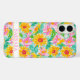 Customize this gorgeous modern sunflowers with pink zinnias painting iPhone 16 plus case with your your name in a trendy modern CAP font in pink on white. It's so beautiful and happy!