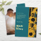 Express your gratitude with this bold modern teal blue and gold sunflower wedding thank you card. The striking design features heartfelt messaging alongside artistic sunflower silhouettes with integrated blue accents. Fully customizable with your names and personal message. Add your own photo for an extra personal touch that shares a special moment from your celebration. Perfect for beach, coastal, or contemporary weddings. Part of a complete collection including invitations, save the dates, and matching stationery. Share your appreciation with modern elegance.
