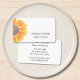 This stylish business card is decorated with a yellow watercolor sunflower and modern typography.