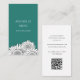 QR code Modern Floral Event Planner business card, with a white sunflowers design on a teal green and white background. With customizable black and white lettering, you can add your own information. Great for promoting your event planner business with a trendy boho style.
